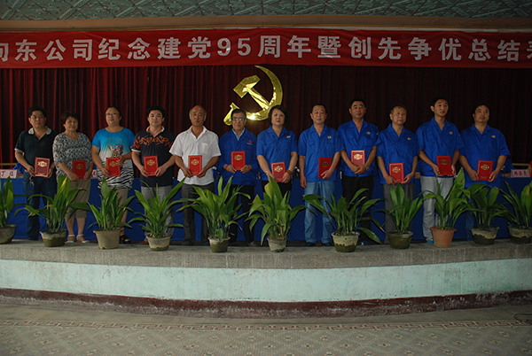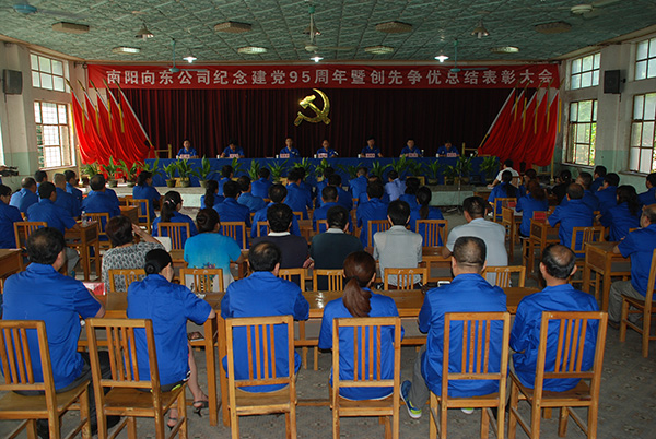 ??? 7月1日上午9時,南陽向東公司紀念建黨95周年暨創先爭優總結表彰大會在文化宮二樓會議廳隆重召開。黨委委員朱超英、喬新濤、姜華、王漢臣、郭方、丁玨、林宗亮在主席臺就坐。會議由黨委委員林宗亮主持。