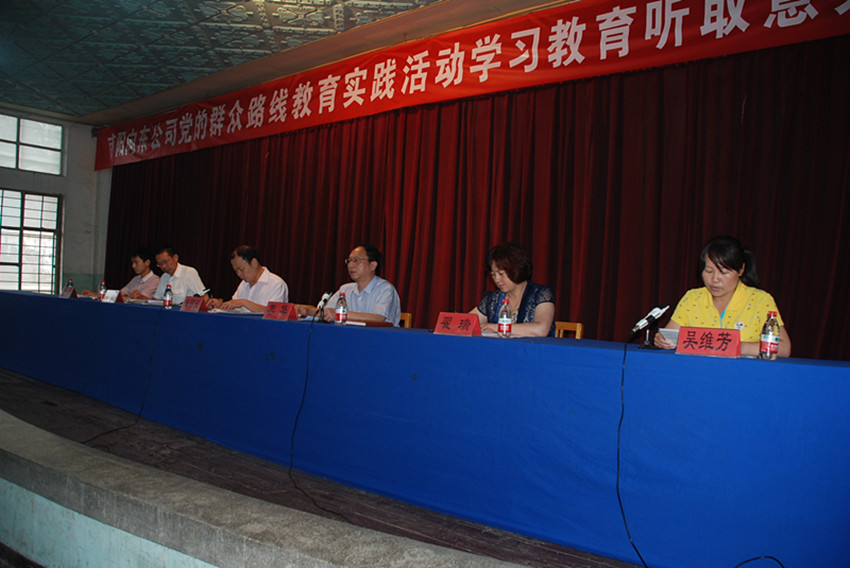 ??? 6月16日上午十點,公司在文化宮二樓會議廳召開黨的群眾路線教育實踐活動學習教育、聽取意見環節述評大會。縣直第四督導組長張國顯,副組長陳新陽,成員翟瑞、劉仁,公司黨委書記姜華在主席臺就坐。會議由黨群工作部副部長吳維芳主持。