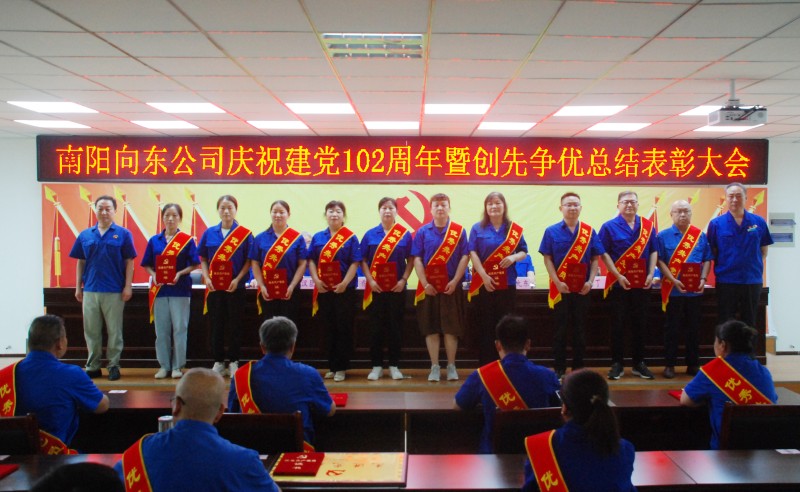 6月30日上午,南陽向東公司在向東工業園隆重召開慶祝中國共產黨成立102周年暨創先爭優總結表彰大會。公司領導喬新濤、姜華、王漢臣、李允東、郭方、丁玨、冀紅波及公司各黨支部書記、黨員代表、新發展黨員、入黨積極分子共80余人參加會議。會議由總經理助理、黨群工作部部長吳維芳主持。