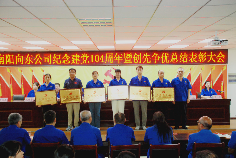 6月27日下午,南陽向東公司在向東工業園隆重召開慶祝中國共產黨成立104周年暨創先爭優總結表彰大會,重溫黨的光輝歷程,謳歌黨的豐功偉績,推動深入貫徹中央八項規定精神學習教育走深走實,進一步增強基層黨支部的凝聚力和戰斗力,激發廣大黨員干部在公司高質量發展的新征程中攻堅克難、砥礪前行。公司領導喬新濤、冀紅波、李允東、姜華、郭方、丁玨、王友志、李天波、楊學義、吳維芳以及兩級領導干部、各黨支部書記、黨員代表、入黨積極分子共80余人參加會議。會議由黨群工作部副部長丁玲主持。