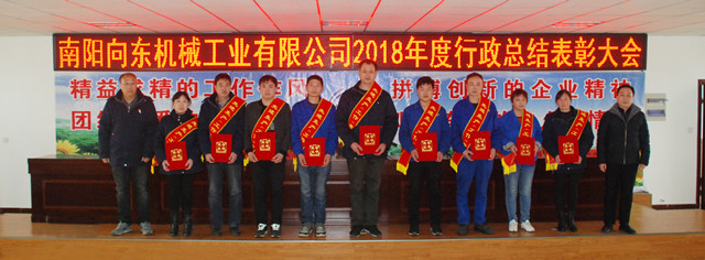 ? ? 監(jiān)事會(huì)主席王漢臣宣讀了《關(guān)于表彰2018年度先進(jìn)集體和先進(jìn)個(gè)人的決定》。南陽(yáng)向東機(jī)械工程有限公司榮獲“紅旗單位”稱號(hào);河南向東機(jī)電設(shè)備有限公司、產(chǎn)品開(kāi)發(fā)與技術(shù)質(zhì)量部等五個(gè)單位榮獲 “先進(jìn)單位”稱號(hào);李天波同志榮獲“勞動(dòng)模范”稱號(hào);李德清、李國(guó)紅等18同志榮獲“先進(jìn)生產(chǎn)(工作)者”稱號(hào);袁華、王軍等六名同志榮獲“優(yōu)秀中層經(jīng)營(yíng)管理者”稱號(hào)。大會(huì)對(duì)獲獎(jiǎng)單位和先進(jìn)個(gè)人進(jìn)行了頒獎(jiǎng)。