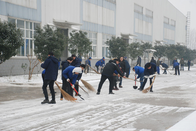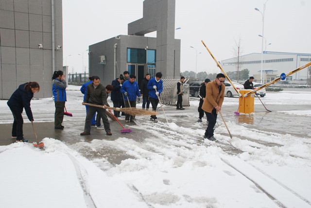? ? 1月9日,南陽迎來了新年的第一場雪,向東工業園被厚厚的積雪覆蓋,給職工上下班帶來諸多不便和安全隱患。為保障安全,方便出行。1月10日,在公司辦公室和后勤管理部的精心組織下,園區全體職工進行了義務掃雪活動。